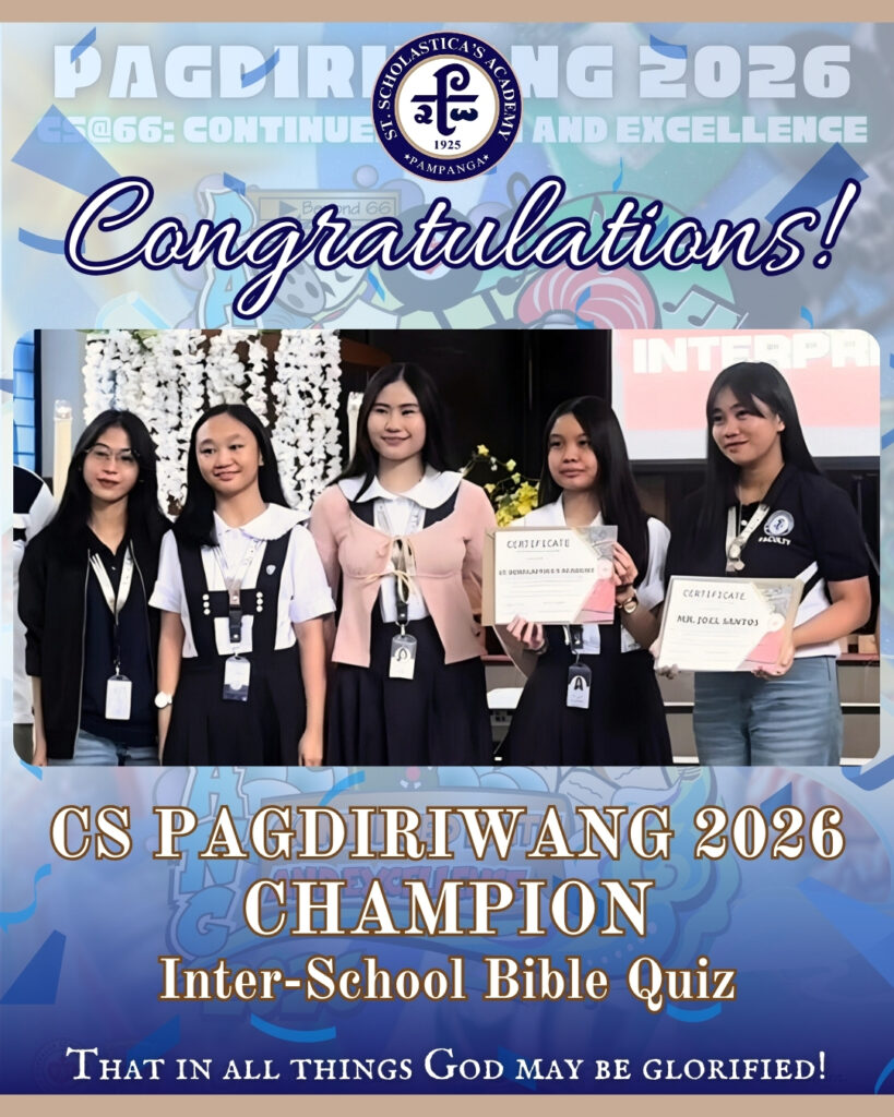 Congratulations, Scholasticans! 🎉 We are beyond proud of your outstanding achievement as Champion 🏅 of the Inter-School Bible Quiz 2026, held during Pagdiriwang 2026 at Chevalier School. Your dedication, wisdom, and teamwork truly shone through, bringing honor not only to yourselves but to the entire Scholastican community. This victory is a testament to your faith, […]