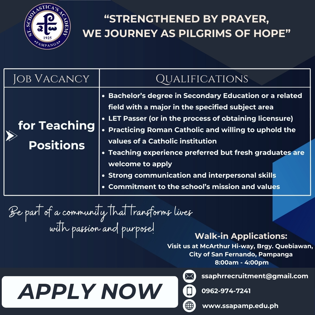 Join Our Team at St. Scholastica’s Academy Pampanga!