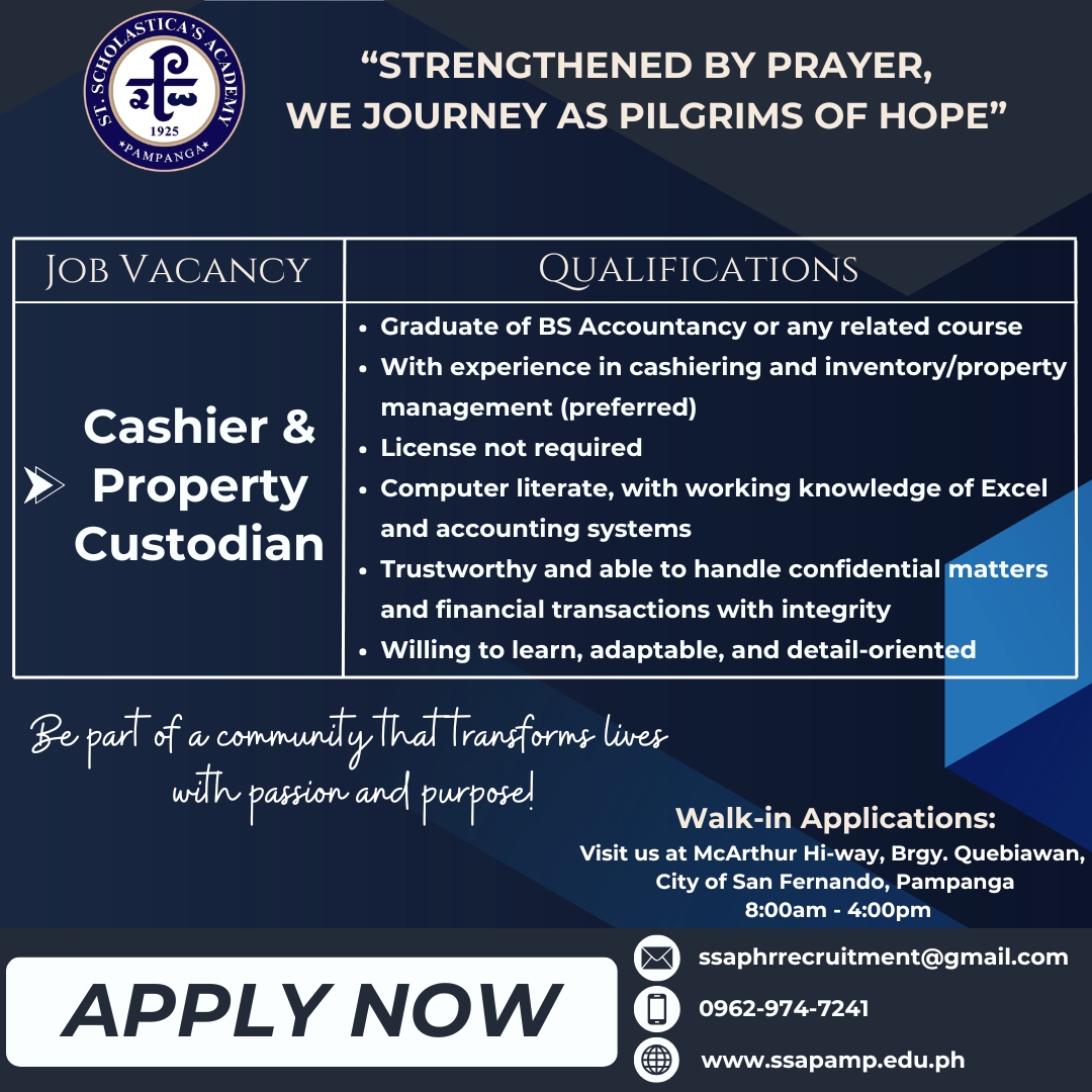 At St. Scholastica’s Academy Pampanga, we are committed to nurturing young minds and fostering an environment of excellence, compassion, and innovation. We are currently seeking dedicated and passionate professionals to join our community in the following role: